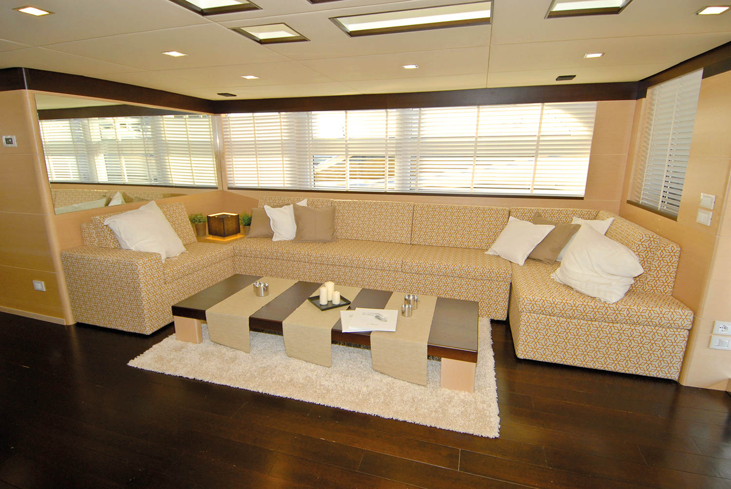 The style of this yacht appears to derive from a successful mix aptly blending an explorer model with a luxury one which results in versatility of use with refined comfort, while this “tailor made” custom built small ship features great appeal for the internal layout and exteriors thanks to large window panels and ample space on deck and below. It has been conceived for the well being of those on board over long periods as well and offers the possibility to adapt every detail according to the owner’s tastes. For example a soft shade of yellow was chosen for this yacht as per the owner’s request as a distinguishing mark but also for more “visibility” when cruising in open waters.