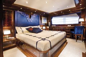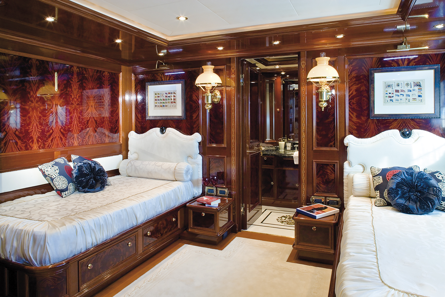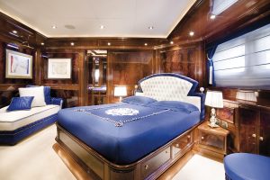 Undoubtedly, a lot of thought and construction prowess went into this yacht where despite no lack of space, everything was painstakingly measured to the nearest millimetre. Amongst the plentiful references to sea voyages found on board Blue Eyes, an anchor stands out in paintings, decorations, etchings and objects, as a vivid reminder that it is a sea voyage one is undertaking thus kindling that sense of adventure that only cruising can give. As we have mentioned, there are all sorts of works of art on board which have required some alternative thinking in terms of their safe keeping whilst allowing the beholder to admire them at will.