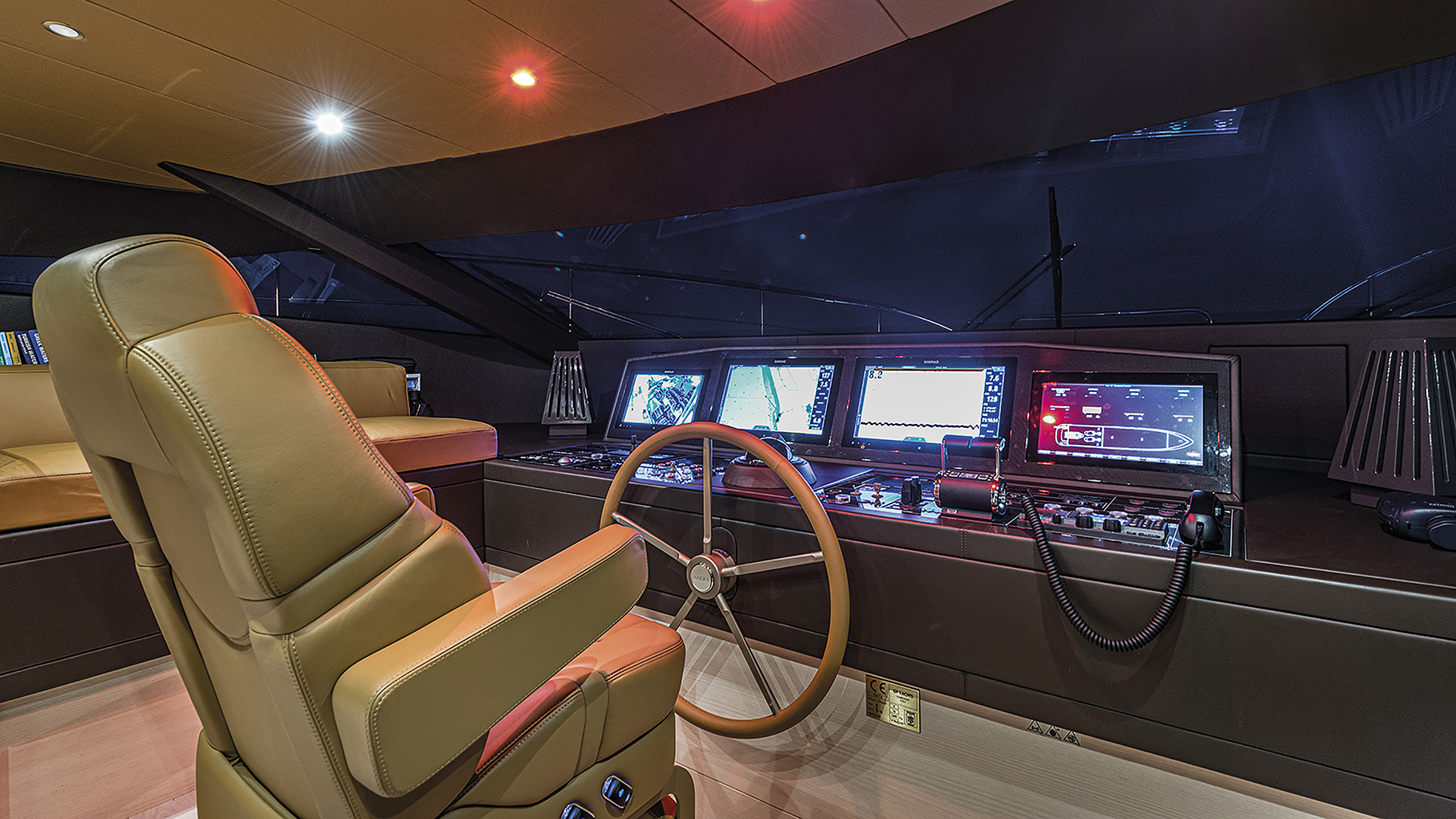 The owner’s suite is situated along the main deck with a panoramic view, an ample bathroom and dressing table which can convert into a desk. The main deck features an easy access configuration developed in such a way that whoever is seated on a wheel chair can climb on board easily and can move about freely up to the owner suite with nothing barring the way.