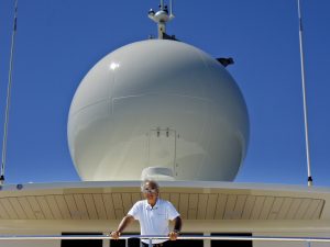 Large striking pictures situated in every area are proof of the owner’s and his family’s vocation to travel and explore. Perini management on board gave us a detailed run down of the pictures that had been mostly taken by the owner and his family. Giancarlo Ragnetti MD of the Viareggio based Group detailed all the ship’s interesting technical features beginning with an impressive radom to enhance communication- not exactly aesthetical but nevertheless very useful to enjoy the best possible satellite coverage even when cruising in high latitudes where the signal is weaker and barely perceptible on the horizon. Galileo’s main feature lies on the bridge – where state of the art equipment in terms of technology is deployed to control and monitor the ship’s progress and on board systems, (there’s a sonar too which measures the real dimension of ice pack and ‘bergs below the waterline).