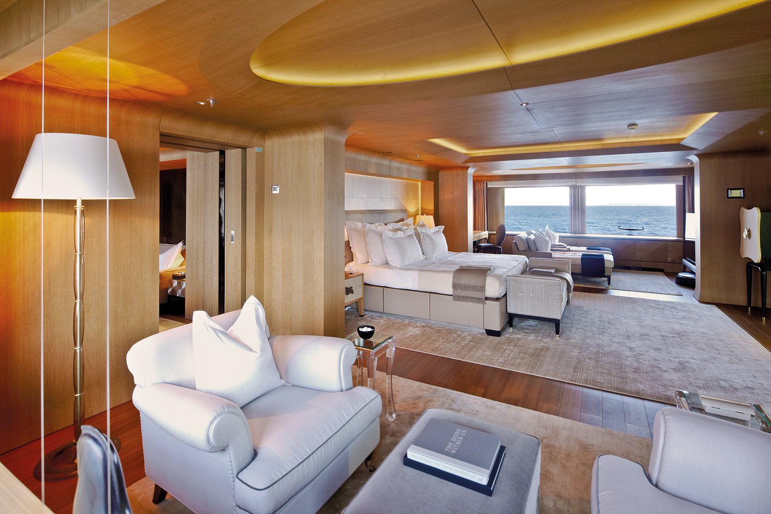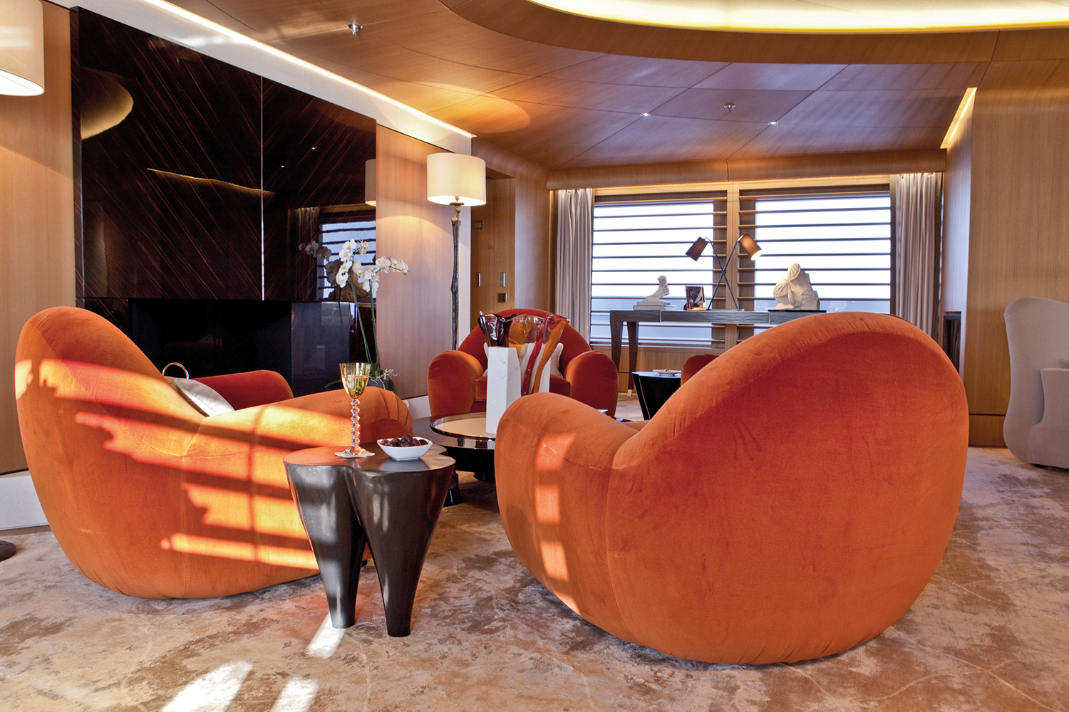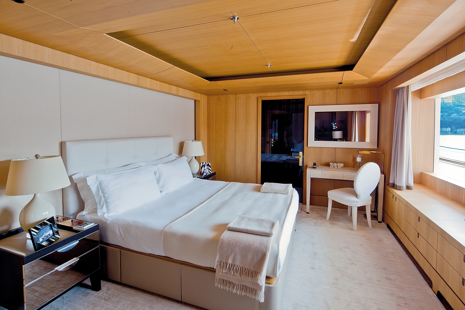 Her elegant and sober look stands out strongly from flowing glossy topsides. The interiors are representative of the owner’s personality bearing well defined design solutions of strong impact with a layout which stands clear of traditional diagrams, but which has privileged the continuity of different spaces linked to one another through a sense of fluid connection which is therefore free of the kind of confusion enhanced by excessive compartmentalisation of the space available. Similarly everything from furniture to accessories and décor as well as lighting has been carefully selected to enhance greater comfort, for the owner and guests to enjoy, in an environment which is equally welcoming and pleasing to the eye.