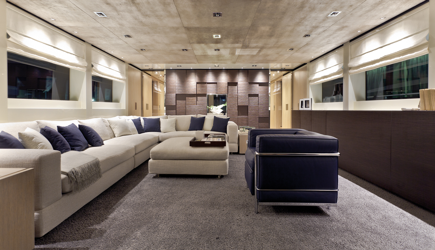 The style is modern and sober in that the materials chosen are fruit of some dedicated research as for example some of the wood work treated three ways, with whitened English oak bulkheads, while some joinery is purposefully made to resemble cloth, and the lacquered metal looking panels and to the existing modern style.