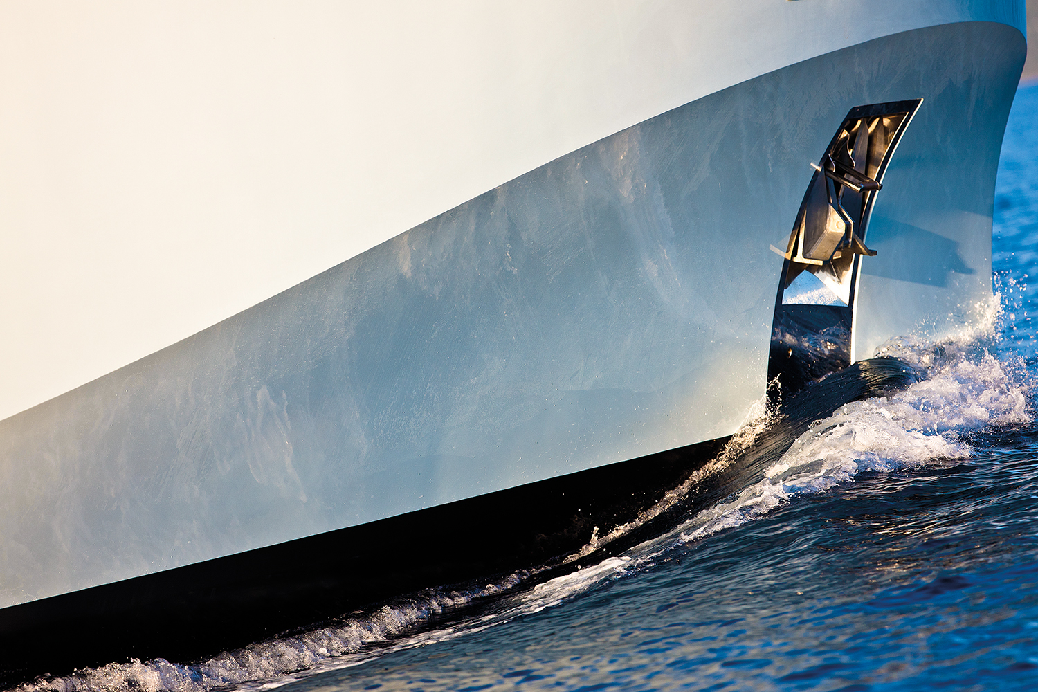 The project was developed with Allseas and her slim piercing lines from the bows to amidships wherefrom they spread out rapidly to even out flat in the stern. The hull’s designed to reduce friction when underway, to cruise well, extensively and slowly.