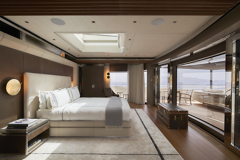L’aspetto più importante che ha connotato la definizione e il concept dello yacht è stata la volontà di creare una continuità tra il Main Deck a poppa, dove si trovano l’area piscina e pranzo, e il Beach Club sul Lower Deck, attraverso una doppia scalinata. Questa caratteristica consente così di vivere entrambe le aree, attorno alle quali ruota la vita sociale a bordo. Con lo specchio di poppa e le piattaforme laterali aperte, il Beach Club, che ospita inoltre sauna, hammam, sala massaggi e palestra au fil de l’eau, copre un’area di ben 78 metri quadrati.