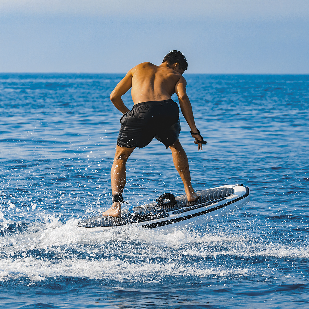 Let’s have a look at this year’s latest few. Following the advent of several electrically propelled surf boards and others equipped with petrol fuelled engines, here comes an all new product from Sweden: Radinn is the name of the manufacturing/exporting company and Maremoto is the official distributor on Italian soil. These boards differ from others on the market, they are lightweight by comparison and compact as well. They’ve been designed with CFD computerized software technology so as to deliver maximum performance and easier maintenance. They are available in two colours white or black and in two sizes: 1.90 or 1.65 metres.